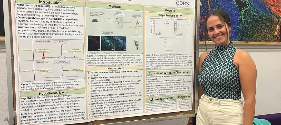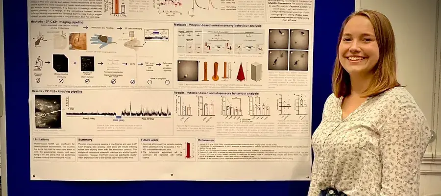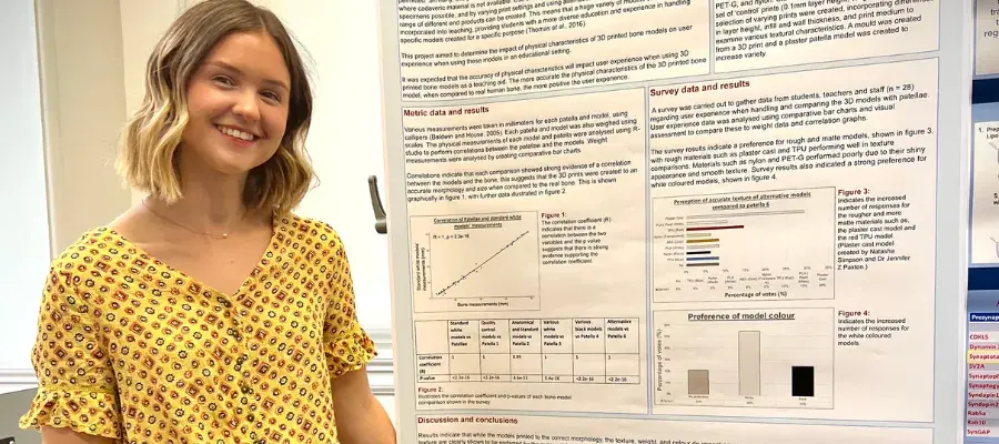Find out about the research projects our students have been involved in as part of the Summer Research Placement Scholarship in 2023. Testing the credibility of using self-testing tampons as a means for HPV screening to detect cervical-associated diseases. Nadiah Ikhlas, Year 4 Biomedical Sciences Coding a data analysis pipeline to analyse 2photon calcium images Marianna Hronska, Year 3 Neuroscience Determining if the accuracy of physical characteristics impacts user experience when using 3D printed bone models as a teaching aid Emily Ritchie, Year 4 Biomedical Sciences Exploring the molecular mechanisms involved in the development of Type 2 diabetes Laura María Quesada Ojeda, Year 4, Reproductive Biology Evaluating 3D technology to help determine whether bone fragment morphology metrics could be accurately replicated Sade Butler, Year 4, Medical Sciences Developing kidney organoids by prolonging the lifespan of arteries and veins in embryonic kidneys. Hannah Collier, Year 3, Biomedical Sciences Exploring the vulnerability of myelination of GABAergic interneurons in a mouse model of Alzheimer’s disease Maialen Martin Abad, Year 4, Neuroscience Comparing the germ cell quantification method used in Edinburgh for the human foetal and prepubertal testis with three alternative quantification methods previously published Emma Kearney, Y4, Reproductive Biology Using bioinformatic analysis to identify the key presynaptic proteins with high SUMO interaction Claudia Singh Gill, Year 4, Neuroscience This article was published on 2024-08-05
