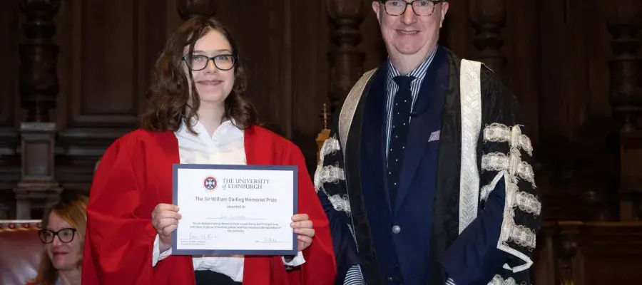 All the latest news from Biomedical Sciences. News listing Search Tags Publication date Date from Date to Biomedical Sciences students awarded Sir William Darling Memorial Prize 09 October, 2025 Jess Lonsdale and Isla Britton were awarded the Sir William Darling Memorial Prize 2025 as part of… Prof David Lyons features on Scotland Tonight 02 May, 2025 Professor David Lyons, Centre for Discovery Brain Sciences, featured on Scotland Tonight on STV to… Royal visit to the Race Against Dementia research laboratory 02 May, 2025 HRH The Duchess of Edinburgh, Patron of Race Against Dementia, visited Dr Claire Durrant's lab… Deciphering Developmental Dynamics: New publication in Science Signaling 21 April, 2025 Congratulations to the Gillingwater lab on their new publication which sheds light on the molecular… New Nature publication from the Pagan lab 25 March, 2025 A new study in Nature reveals that individuals use different neural strategies to make flexible… ZJE Showcases Progressive TNE Models at CBBC Education Forum 25 March, 2025 Professor Sue Welburn (Executive Dean, Zhejiang University-University of Edinburgh Institute and UK… Best Poster Award at the 2025 Brain Conference 25 March, 2025 Congratulations to Federica Genovese, PhD student in Prof Gillingwaters lab who took first prize… Prof Sue Welburn recognised in New Year Honours List 2025 25 March, 2025 Many congratulations to Professor Susan Welburn, Professor of Medical and Veterinary Molecular… Runner up - Scottish Microscopist of the Year 2024 25 March, 2025 Congratulations to Dr Cristina Martinez-Gonzalez who was awarded the Runner-up prize for the… Cameron Prize for Therapeutics Symposium 10 October, 2024 The Cameron Prize for Therapeutics is awarded by the University of Edinburgh to individuals who… New Chancellor's Fellows 2024 12 June, 2024 Congratulations and welcome to Dr Mahesh Karnani who joins BMS/CDBS as a 2024 Chancellor’s Fellow… Academy of Medical Sciences announces new Fellows for 2024 21 May, 2024 Congratulations to Prof Tara Spires-Jones, who has been elected as a new Fellow to the Academy of… Professor Tara Spires-Jones receives recognition award from the Alzheimer's Association 14 May, 2024 Congratulations to Professor Tara Spires-Jones who has received the Inge Grundke-Iqbal Award for… Dr Carole Torsney interviewed on BBC World Service 14 May, 2024 Carole, who is a Reader at the Centre for Discovery Brain Sciences, chatted to Dr Zoe Williams on… Dr Dawn Livingston is CMVM Teacher of the Year! 14 May, 2024 Congratulations to Dr Dawn Livingston, Senior Lecturer in the Centre for Discovery Brain Sciences,… BMS success at the CMVM recognition awards 2024 18 April, 2024 The annual CMVM staff recognition awards were held this year at the Playfair Library, where BMS… New research published in the Journal of Anatomy brings tissue engineered replacements closer to the clinic 29 February, 2024 Congratulations to the Paxton Lab on their recent publication in the Journal of Anatomy which… Success at the CBBC'S 2024 China-Scotland Business Awards 16 February, 2024 We are delighted to announce that the Zhejiang University - University of Edinburgh Institute (ZJE… Progress in tissue engineered bone production: new publication from the Paxton Lab 23 January, 2024 Paxton Lab PhD researcher, Vinothini Prabhakaran, and colleagues have published a new study… Professor Tom Gillingwater Elected Honorary Fellow of the Anatomical Society 13 November, 2023 Congratulations to Tom on this high award from the Anatomical Society! 1 2 3 4 5 6 7 8 9 … This article was published on 2024-08-05
